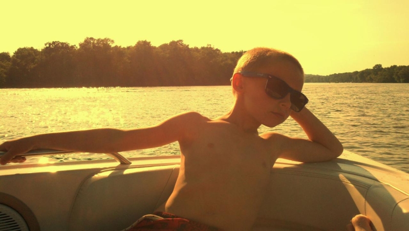This picture is of my oldest son Tanner while boating with my younger brother on the Rock River in Dixon, IL. Dixon was the home of US President Ronald Reagan and has a rich history as a trading post and military encampment during the Blackhawk Wars in the early 1800s. It was the first time we had been out on my brother’s new boat and we all had a blast. One of Tanner’s favorite things to do is hang out with his uncles and his cousin Cole who is just a bit younger than him. On this particular day we spent time swimming, tubing and watched my younger brother do some wake boarding. We even pulled up to a large sand bar and spent some time swimming there while watching a guy on another boat pull in a large bass on a fishing line. At the end of the day, Tanner was chilling up on the front of the boat and my older brother, who was also with us, snapped this picture. I hope to have many more days on the river with my brothers and our kids enjoying the water and fun times.